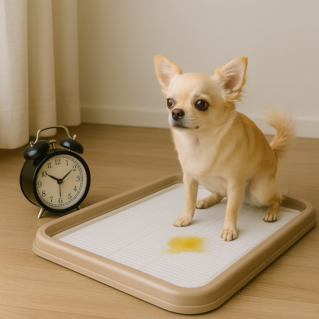 실수했을 땐 절대 혼내지 마세요. 강아지는 왜 혼나는지 이해하지 못하고 오히려 배변 자체를 두려워하게 될 수 있어요. 조용히 치우고 다시 유도해주는 것이 좋아요.